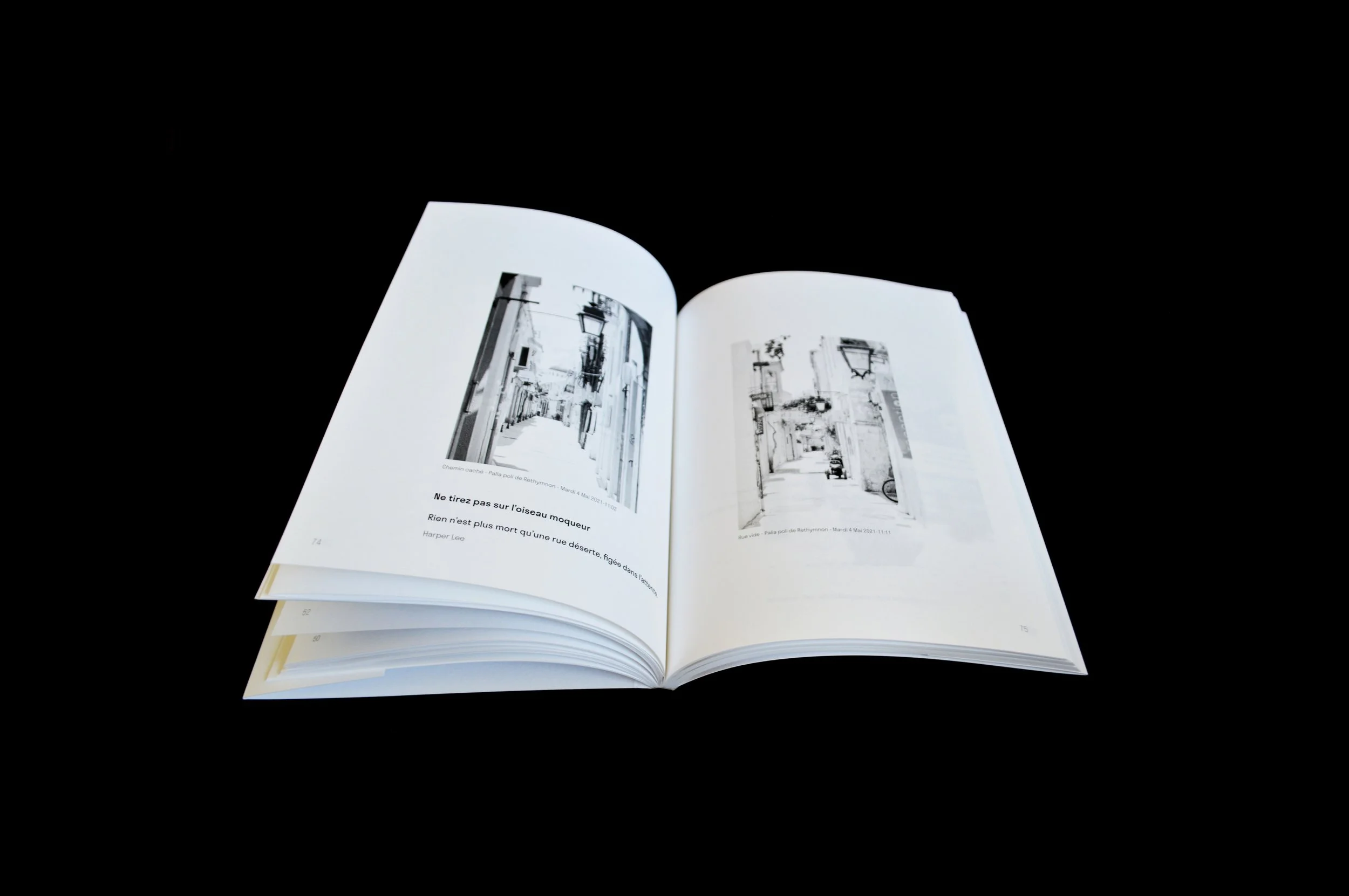 As I go from one street to another, I often feel transformed. Various emotions, feelings and memories arise in me. The street reminds me of melodies, of people I met there, sometimes even I am overwhelmed by everything that can or could happen there on a daily basis. I walk the same streets every day, but what they evoked me a year ago is no longer relevant. These streets haven’t changed, but I’m the one who’s changed over time. This edition -agenda is illustrated with street photographs of my childhood city in Crete. Passing from one image to another will arise feelings, emotions, different eras. Each street is associated with a memory, a thought, an idea, a joy, a melancholy. The street is not just a passageway from one point to another, it is everything : beach, harbour, people, animals, vegetation, all the life that can take place there. Every detail of the street makes what it is, participates in its construction and its representation that we make of it according to our own feelings. In this diary some will be able to identify with it by going through it, perhaps having feelings similar to mine.